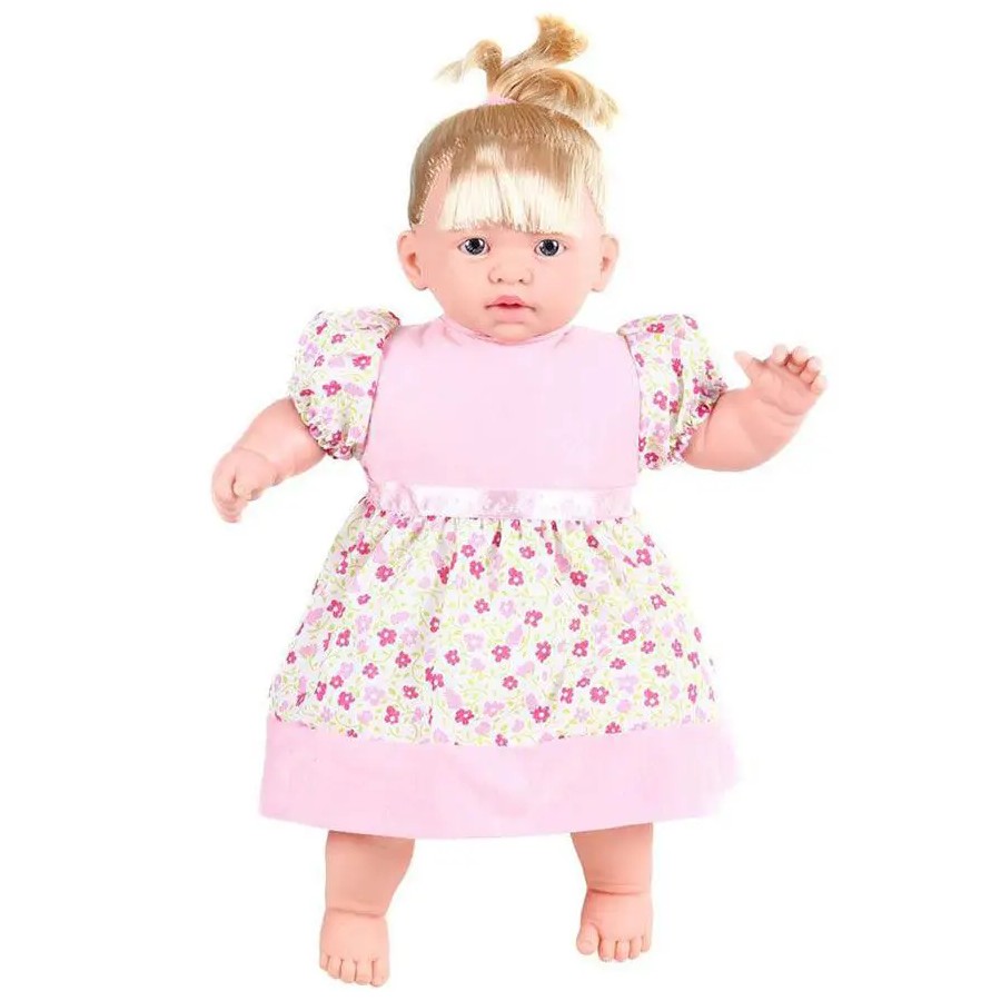 Hum...Parece que ela quer suquinho.Depois de tomar o suquinho a boneca faz xixi e precisa trocar a fraldinha! Dimensões Aproximadas da Boneca