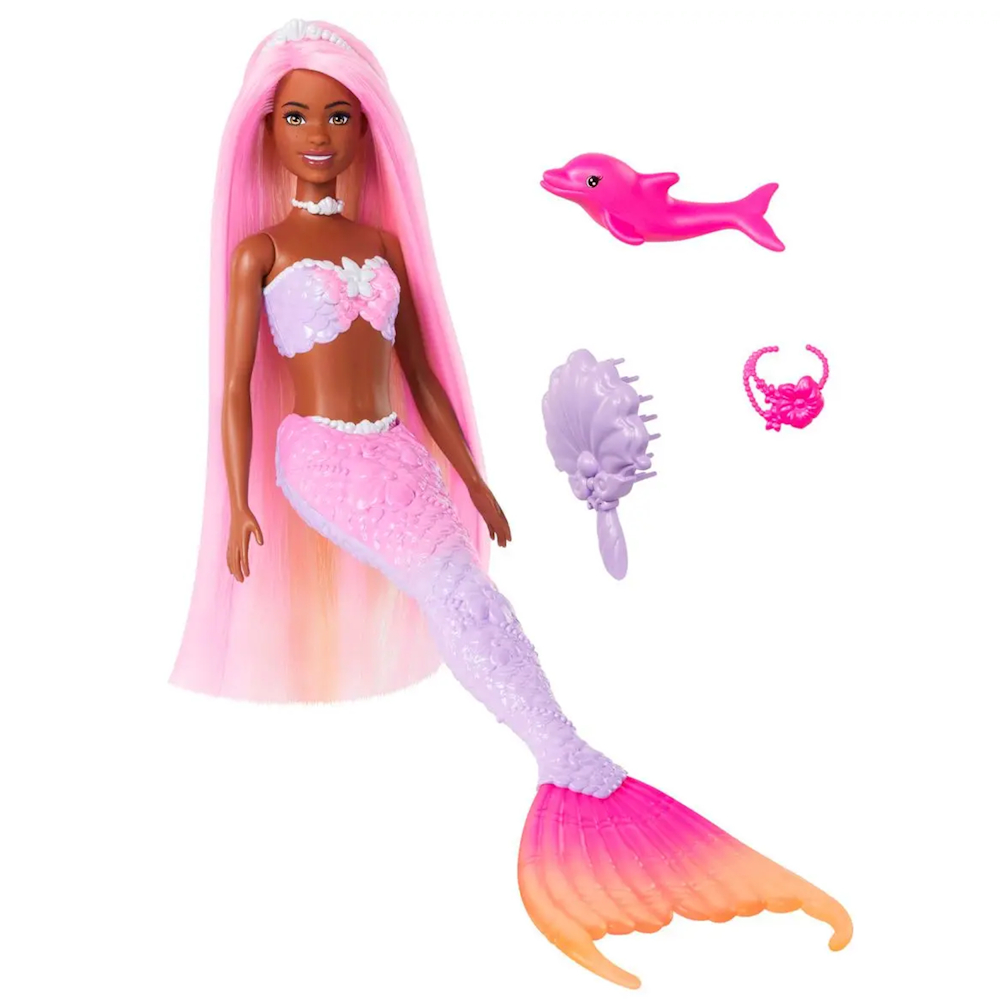 Entre em um mundo mágico de fantasia com as Barbie Fantasia Sereia Cores Mágicas da Mattel. Estas encantadoras sereias possuem cabelos longos e sedosos, corpetes modelados e cauda degradê que transformam de um rosa chiclete suave para um roxo vibrante, e vice-versa, adicionando um toque de magia a cada mergulho. Cada boneca Barbie Sereia é acompanhada de acessórios fashion para completar seu visual deslumbrante. Prepare-se para se encantar com a magia das Barbie Sereia, enquanto você mergulha em um mundo de fantasia e aventura debaixo d'água! Atenção: Sortimento, cores e modelos podem variar sem opção de escolha.