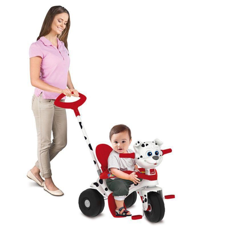 Com o Triciclo de Passeio e Pedal - Tonkinha - Doggy - Bandeirante a diversão é garantida! Na Função Passeio, o adulto utiliza a haste direcionável para conduzir o triciclo. Basta destravar o dispositivo de roda livre e colocar o cercado de proteção e o apoio dos pés; Já a Função Pedal, permite à criança pedalar livremente como um triciclo convencional. Basta travar o dispositivo de roda livre e remover o cercado e o apoio dos pés. Possui assento anatômico confortável com baixa distância do solo e altura ideal para a criança subir e descer de forma fácil e segura, cercado de proteção removível com painel interativo, dispositivo de roda livre transforma o pedal em apoio para os pés da criança enquanto o triciclo é movimentado, haste direcionável e removível, apoio traseiro anatômico, chip sonoro Doggy e apoio removível mantém os pés da criança apoiados confortavelmente. Recomendado para crianças maiores de 1 ano de idade.